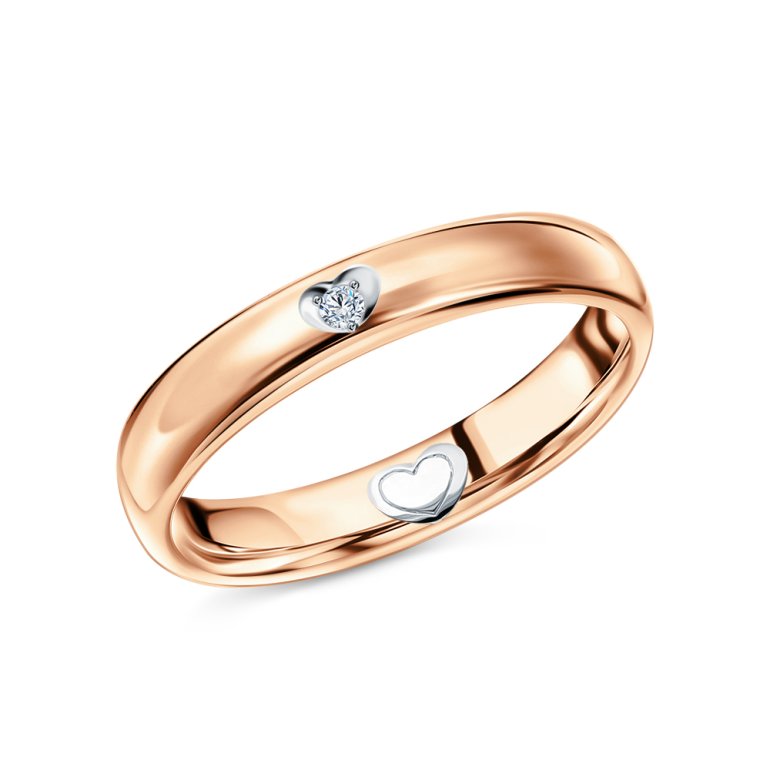 Кольцо с 1 бриллиантом, 0.013 карат, огранка круг 57 граней, цвет 3, чистота 6, тип огранки А; Розовое и белое золото 585 пробы.