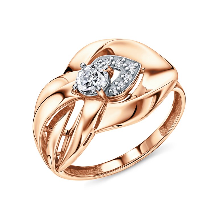 Кольцо, вставка: фианитом бесцветным; Розовое золото 585 пробы.