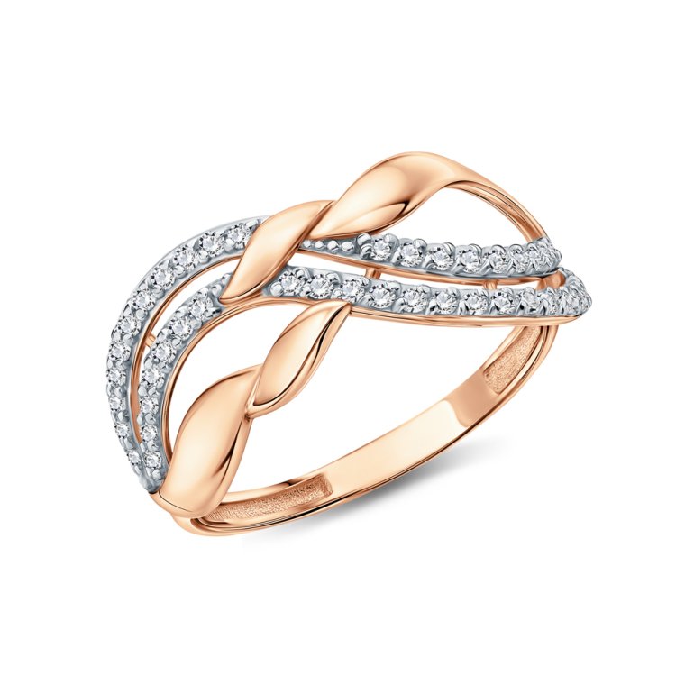 Кольцо, вставка: фианитом бесцветным; Розовое золото 585 пробы.