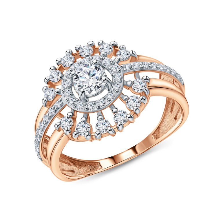 Кольцо, вставка: фианитом бесцветным; Розовое золото 585 пробы.
