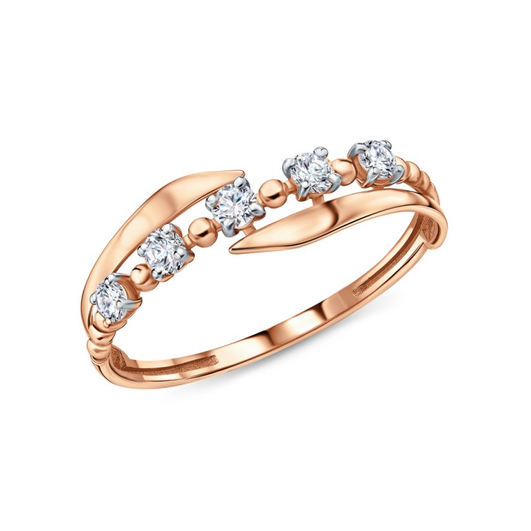 Кольцо, вставка: фианитом бесцветным; Розовое золото 585 пробы.
