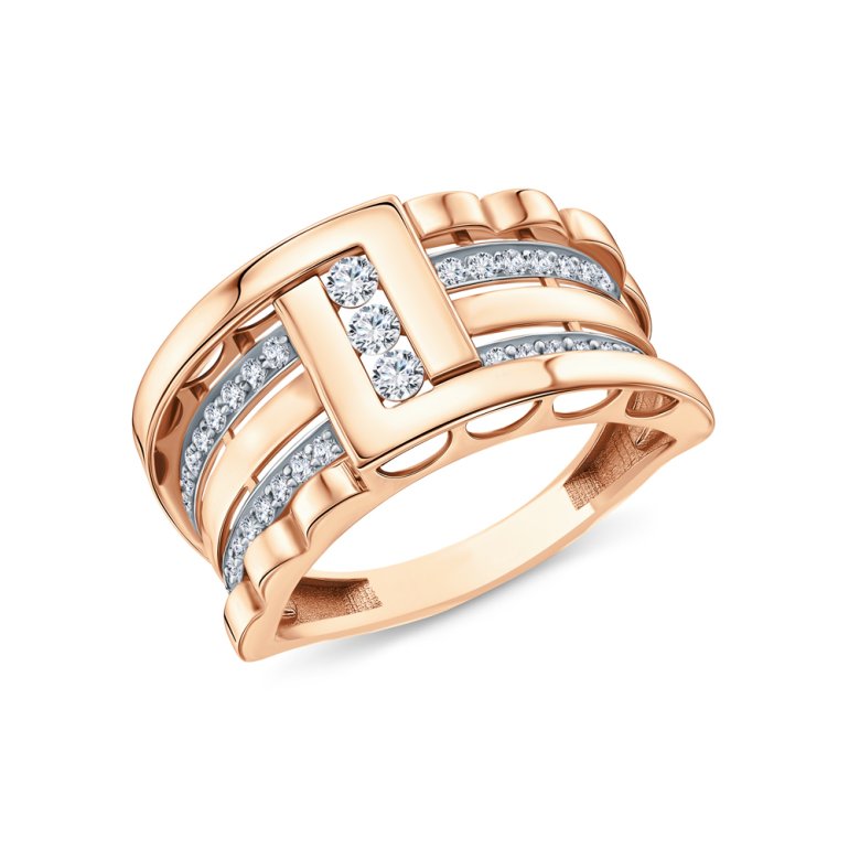 Кольцо, вставка: фианитом бесцветным; Розовое золото 585 пробы.