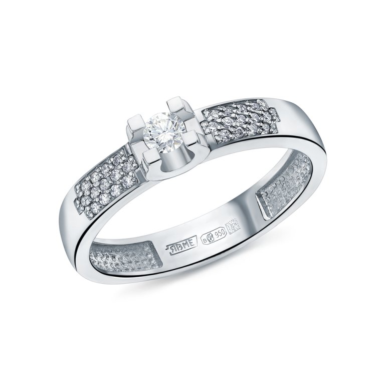 Кольцо с 1 бриллиантом природным, 0.103 карат, огранка круг 57 граней, цвет 3, чистота 6, тип огранки А; 26 бриллиантами природными, 0.072 карат, огранка круг 57 граней, цвет 3, чистота 6, тип огранки А; Платина 950 пробы.