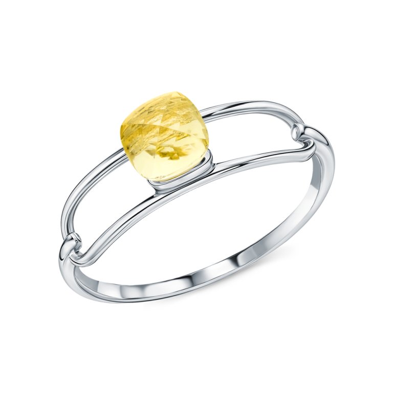 Кольцо с 1 кварцем лимонным природным, 0.968 карат; Серебро 925 пробы.