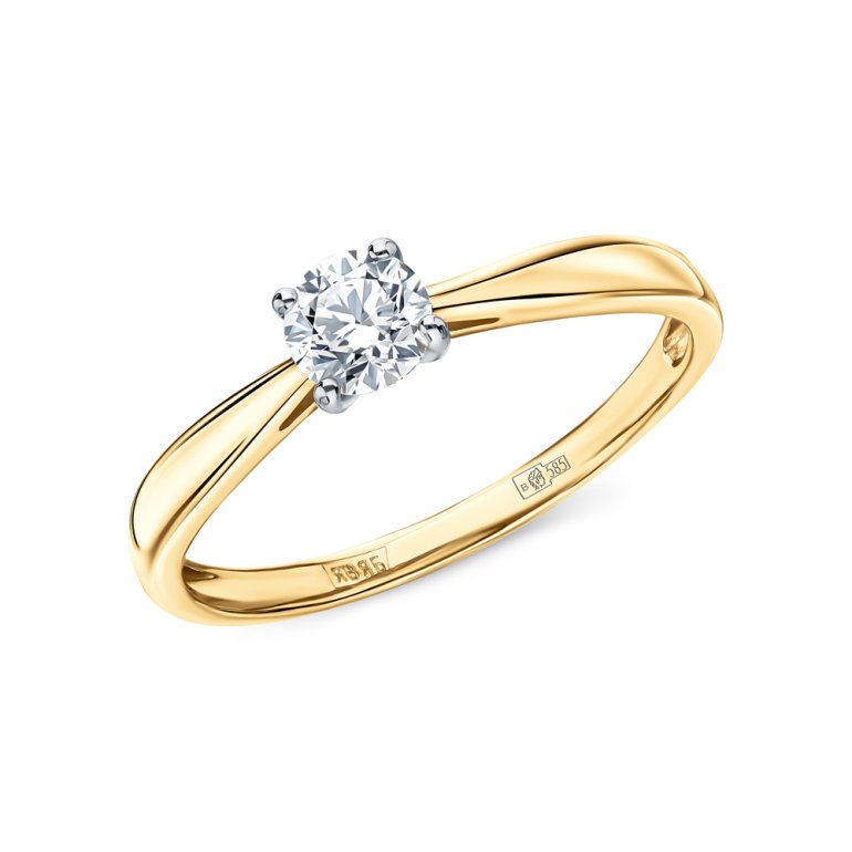 Кольцо с 1 бриллиантом природным, 0.295 карат, огранка круг 57 граней, цвет 3, чистота 6, тип огранки А; Желтое золото 585 пробы.