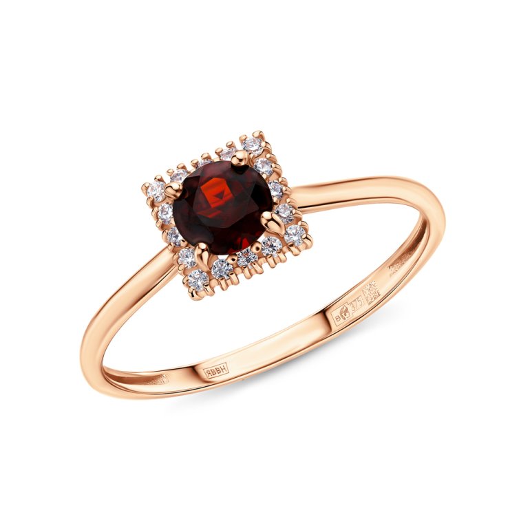 Золотое кольцо с фианитами и гранатами природными К720-3342М6* Кольца SUNLIGHT | V4.Ru: Маркетплейс