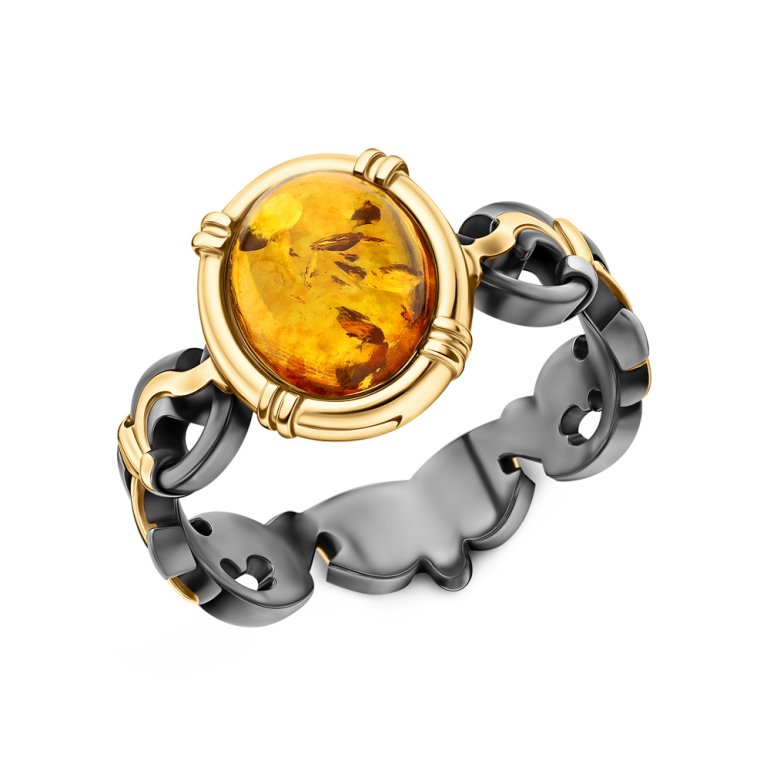 Кольцо с 1 янтарем коричневым природным, 2.815 карат, тип огранки Б; Серебро 925 пробы.