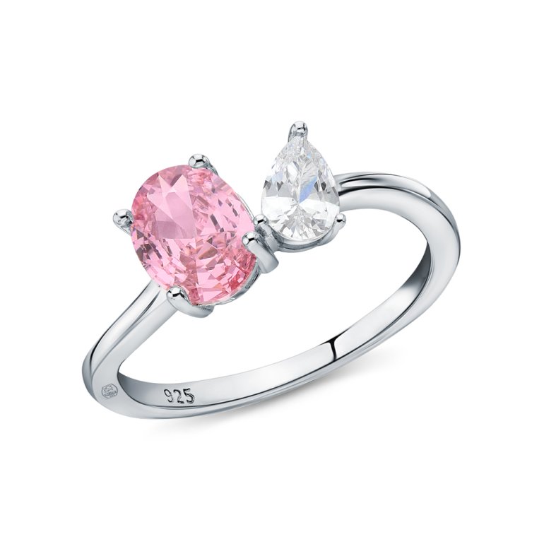 Кольцо, вставка: фианитом бесцветным;  фианит розовый; Серебро 925 пробы.