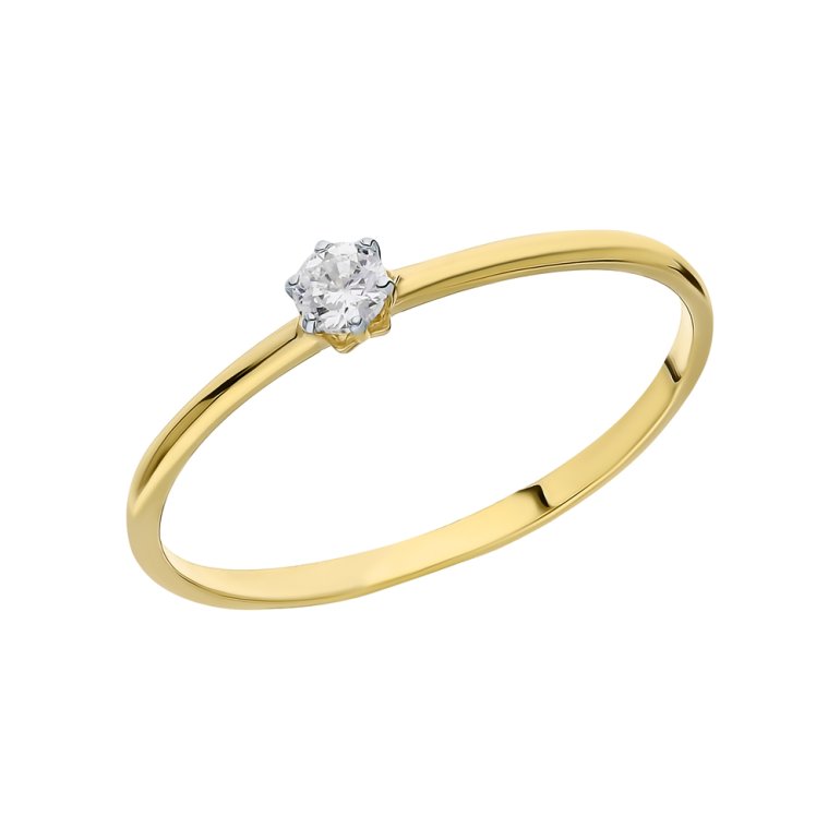 Кольцо, вставка: фианитом бесцветным; Желтое золото 375 пробы.