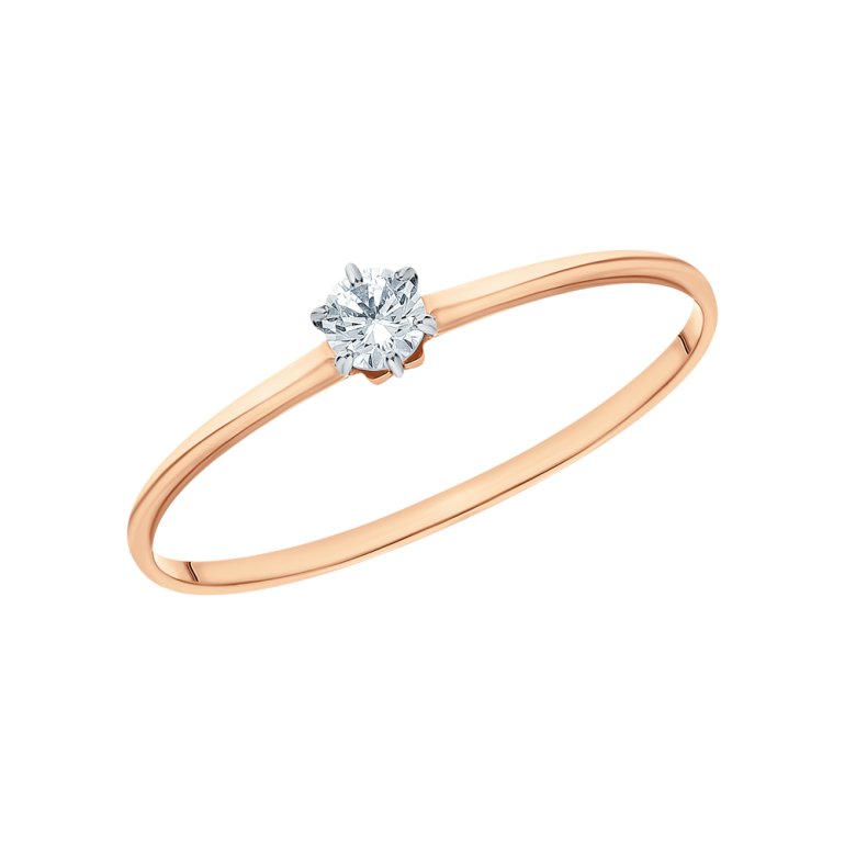 Кольцо, вставка: фианит; Розовое золото 375 пробы.