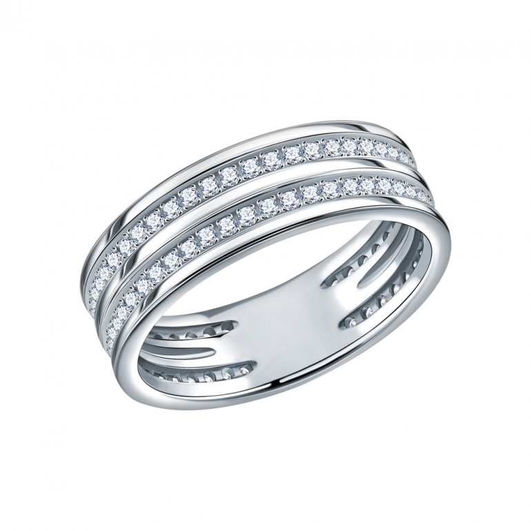 Кольцо с 94 бриллиантами, 0.495 карат, огранка круг 57 граней, цвет 3, чистота 6, тип огранки А; Белое золото 585 пробы.