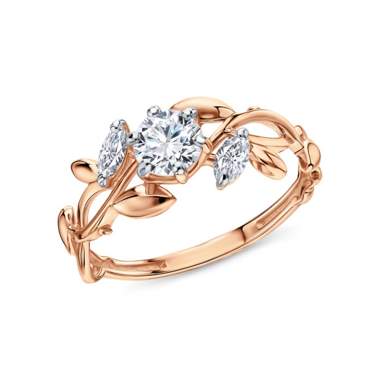 Кольцо, вставка: фианитом бесцветным; Розовое золото 585 пробы.