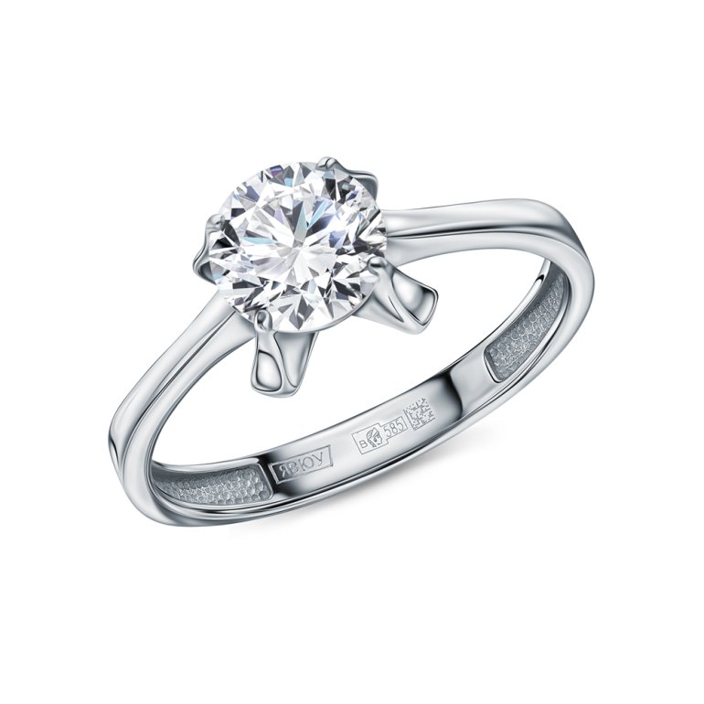 Кольцо с 1 бриллиантом выращенным, 0.88 карат, огранка круг 57 граней, цвет 4, чистота 5, тип огранки А; Белое золото 585 пробы.