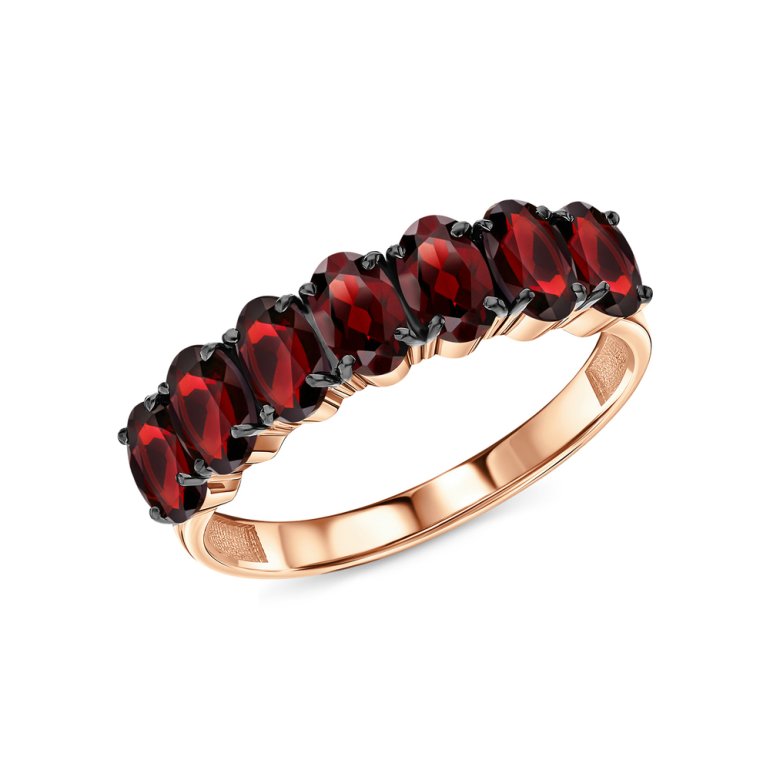 Кольцо с 7 гранатами природными, 1.89 карат, тип огранки Б; Розовое золото 585 пробы.
