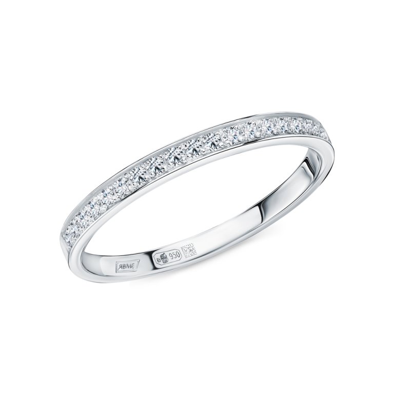 Кольцо с 19 бриллиантами природными, 0.137 карат, огранка круг 57 граней, цвет 3, чистота 6, тип огранки А; Платина 950 пробы.