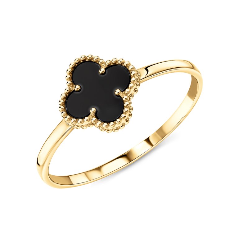 Кольцо с 1 ониксом черным природным, 0.74 карат; Желтое золото 585 пробы.