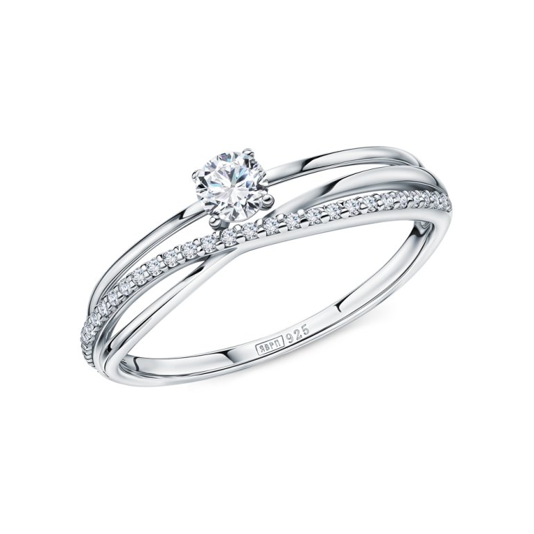Кольцо, вставка: фианитом бесцветным; Серебро 925 пробы.
