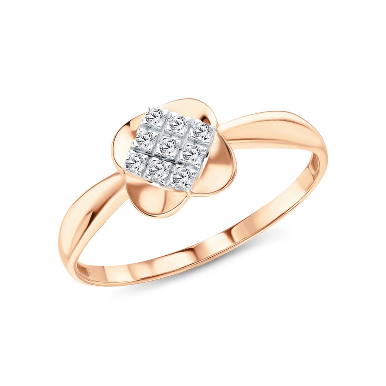 Кольцо, вставка: фианитом бесцветным; Розовое золото 585 пробы.