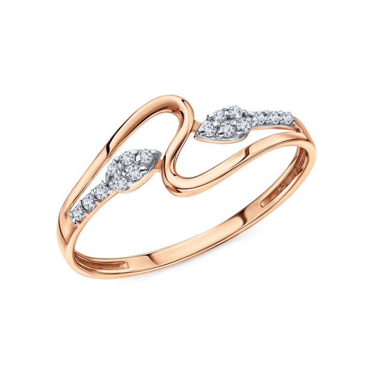 Кольцо, вставка: фианитом бесцветным; Розовое золото 585 пробы.