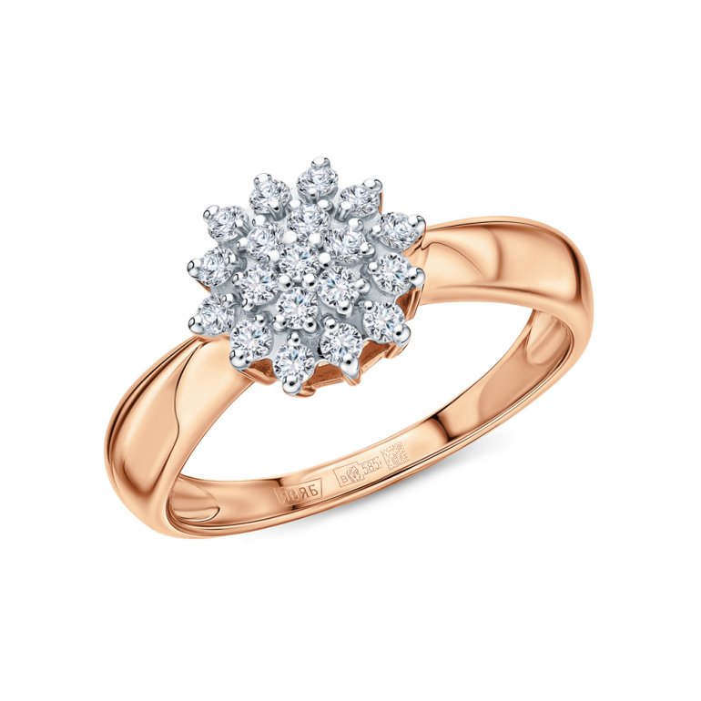 Кольцо с 19 бриллиантами природными, 0.329 карат, огранка круг 57 граней, цвет 3, чистота 6, тип огранки А; Розовое золото 585 пробы.