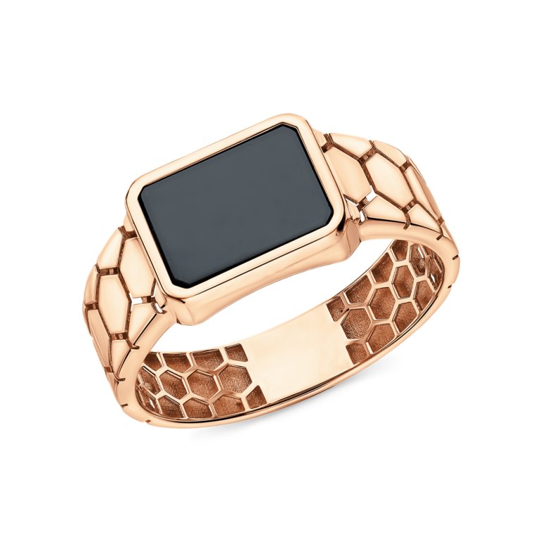 Кольцо, вставка: черным фианитом; Розовое золото 585 пробы.