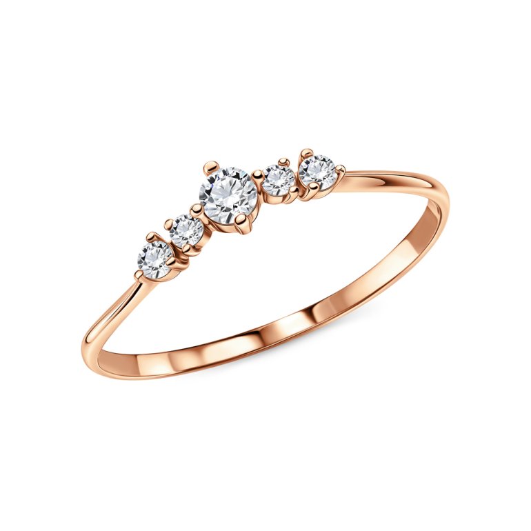 Кольцо, вставка: фианитом бесцветным; Розовое золото 585 пробы.