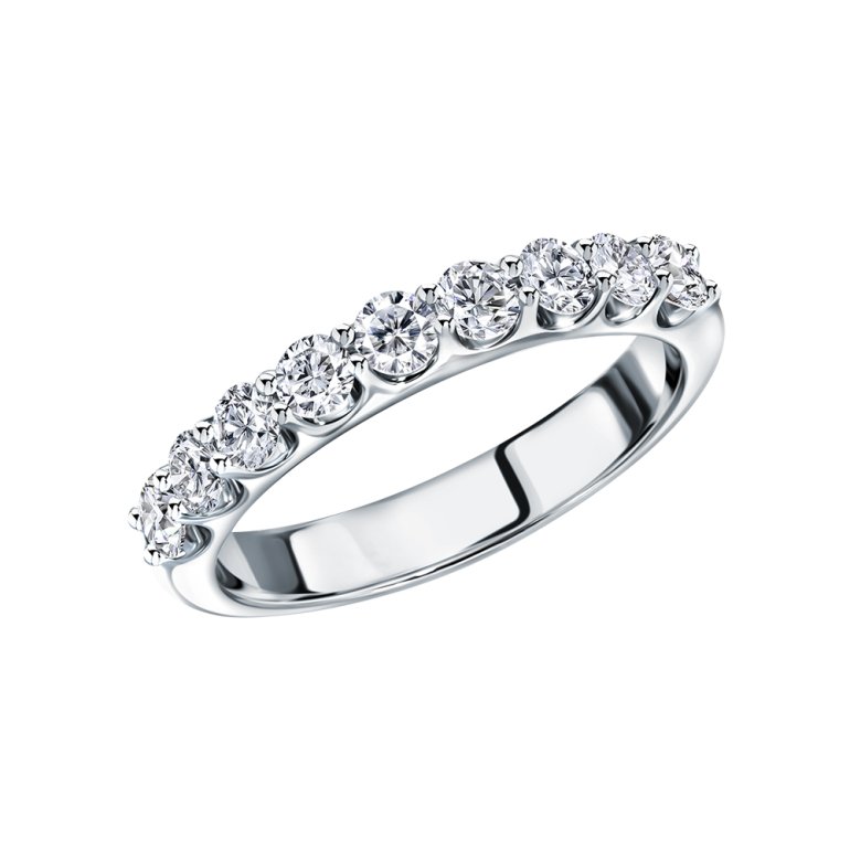 Кольцо с 9 бриллиантами природными, 0.775 карат, огранка круг 57 граней, цвет 3, чистота 6, тип огранки А; Платина 950 пробы.