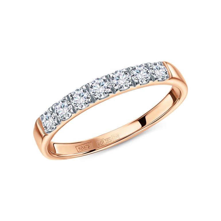 Кольцо с 7 бриллиантами природными, 0.419 карат, огранка круг 57 граней, цвет 3, чистота 6, тип огранки А; Розовое золото 585 пробы.