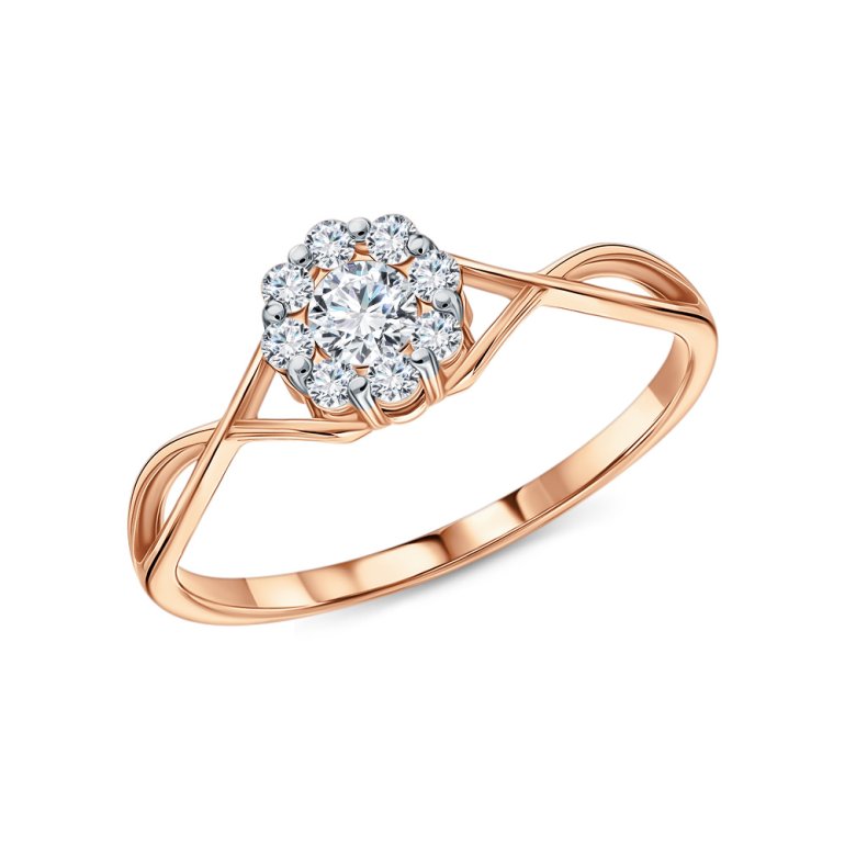 Кольцо с 1 фианитом бесцветным, 0.252 карат; 8 фианитами бесцветными, 0.228 карат; Розовое золото 585 пробы.