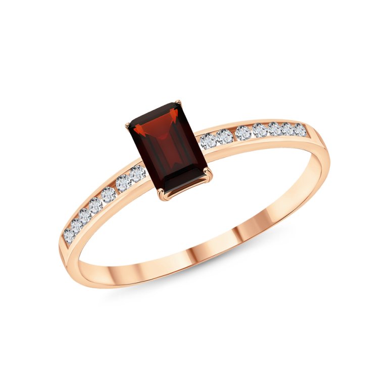 Кольцо с 1 гранатом природным, 0.72 карат, тип огранки Б; фианитом бесцветным; Розовое золото 375 пробы.