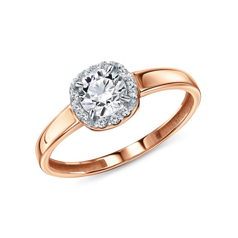 Кольцо, вставка: фианитом бесцветным; Розовое золото 375 пробы.