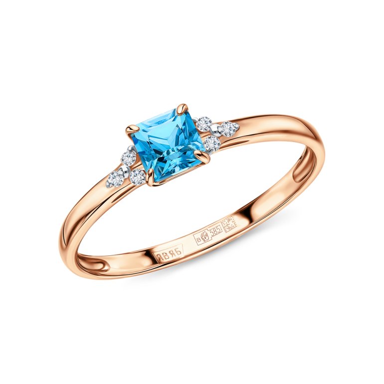 Кольцо с 6 бриллиантами природными, 0.03 карат, огранка круг 17 граней, цвет 2, чистота 2, тип огранки А; 1 топазом свисс природным, 0.396 карат; Розовое золото 585 пробы.
