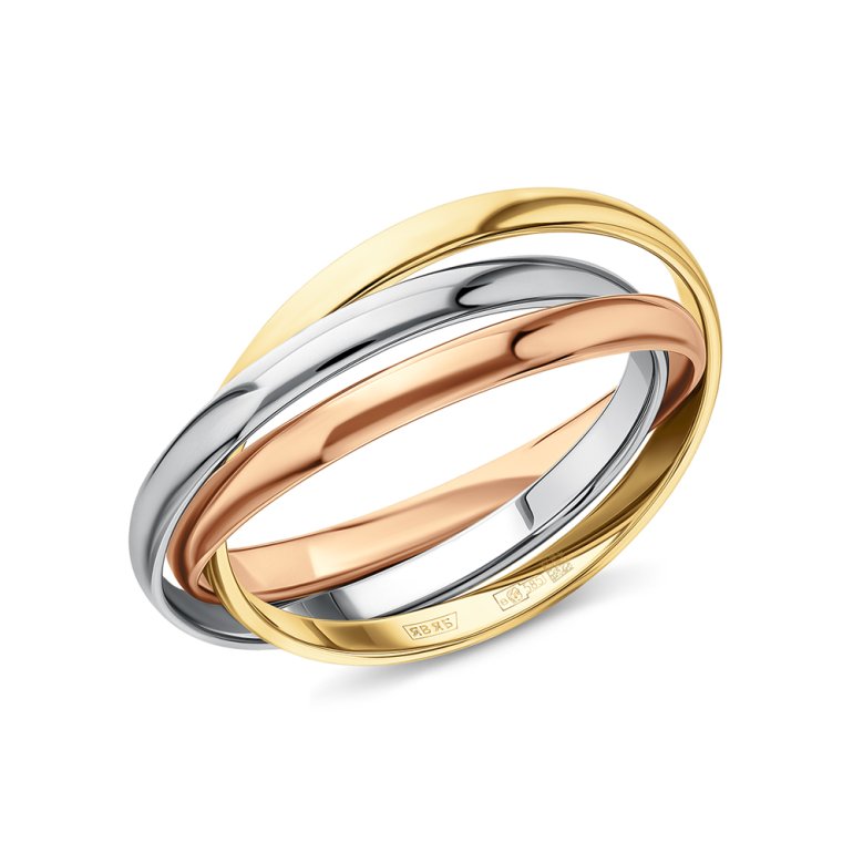 Кольцо Розовое, белое и желтое золото 585 пробы.