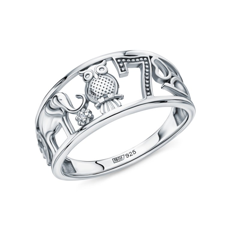 Кольцо с 3 бриллиантами природными, 0.01 карат, огранка круг 17 граней, цвет 3, чистота 3, тип огранки Б; Серебро 925 пробы.