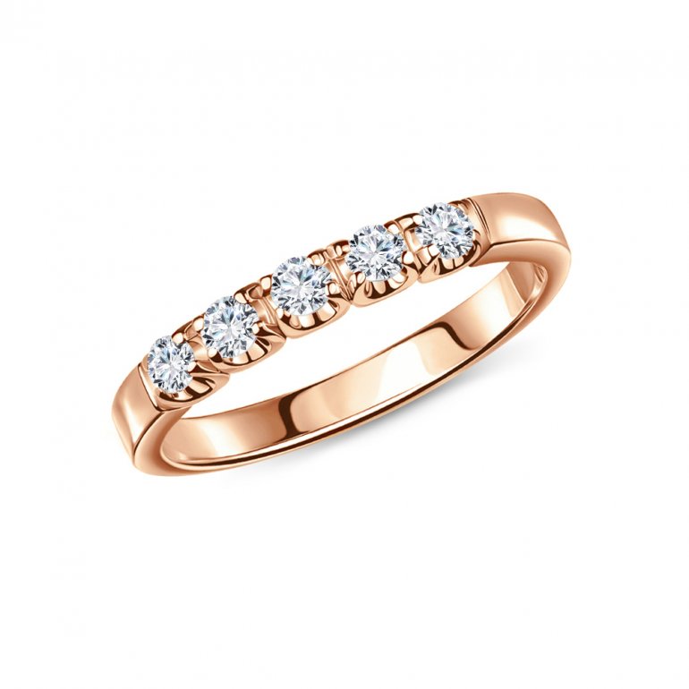 Кольцо с 5 бриллиантами природными, 0.133 карат, огранка круг 57 граней, цвет 4, чистота 6, тип огранки А; Розовое золото 585 пробы.