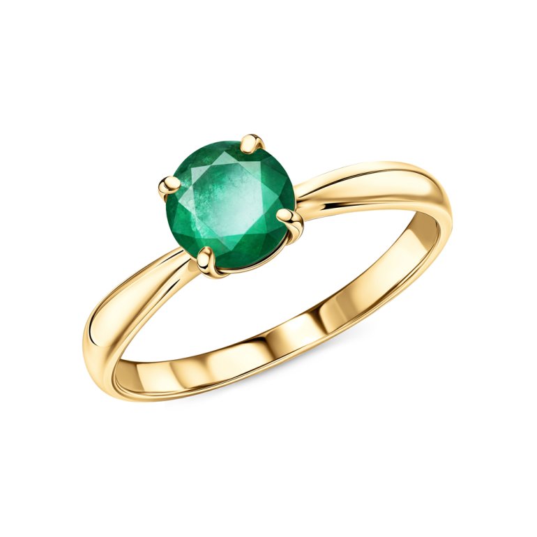 Кольцо с 1 изумрудом выращенным Колумбия, 0.74 карат, тип огранки В; Желтое золото 585 пробы.