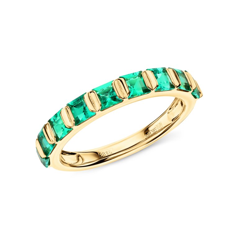 Кольцо с 9 изумрудами выращенными Колумбия, 1.069 карат, тип огранки Б; Желтое золото 585 пробы.