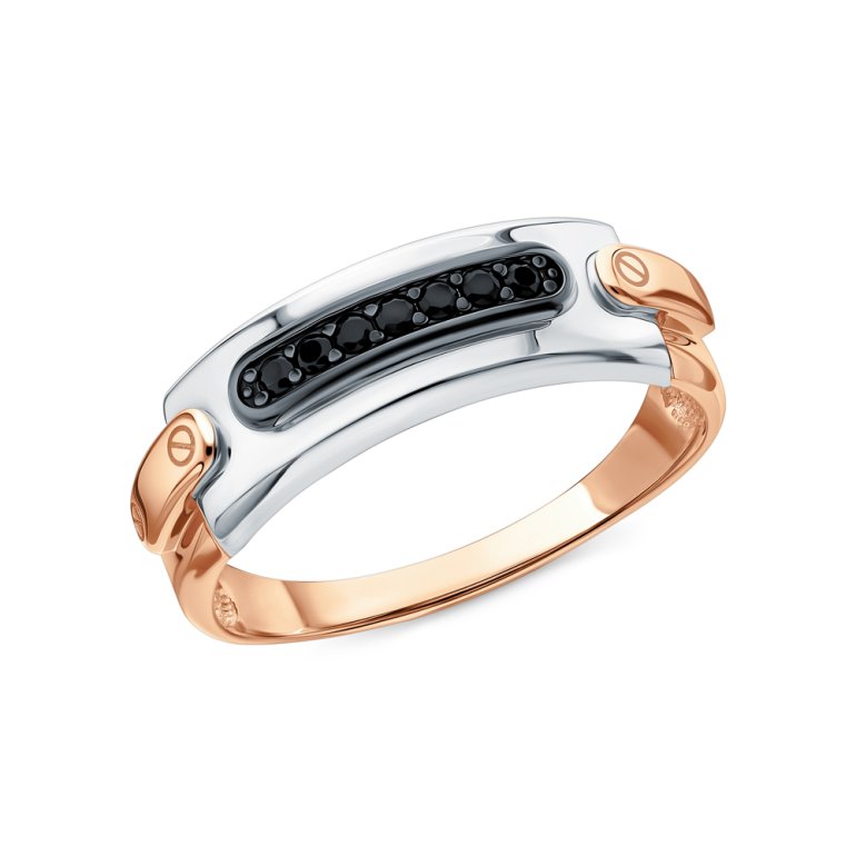 Кольцо, вставка: черным фианитом; Розовое золото 585 пробы.
