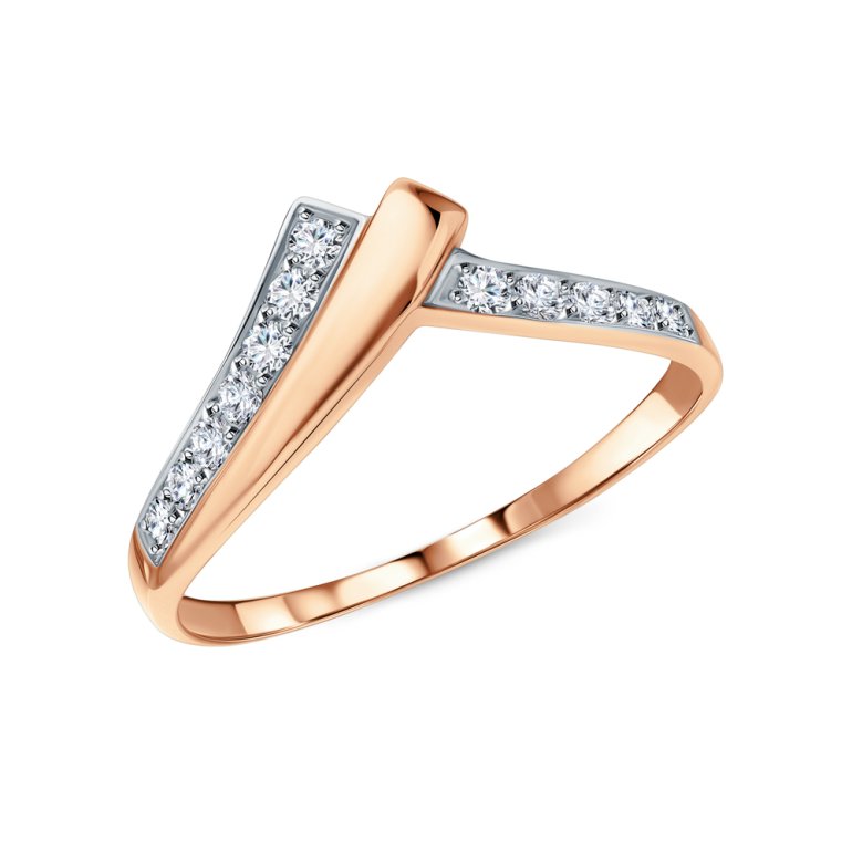 Кольцо, вставка: фианитом бесцветным; Розовое золото 585 пробы.