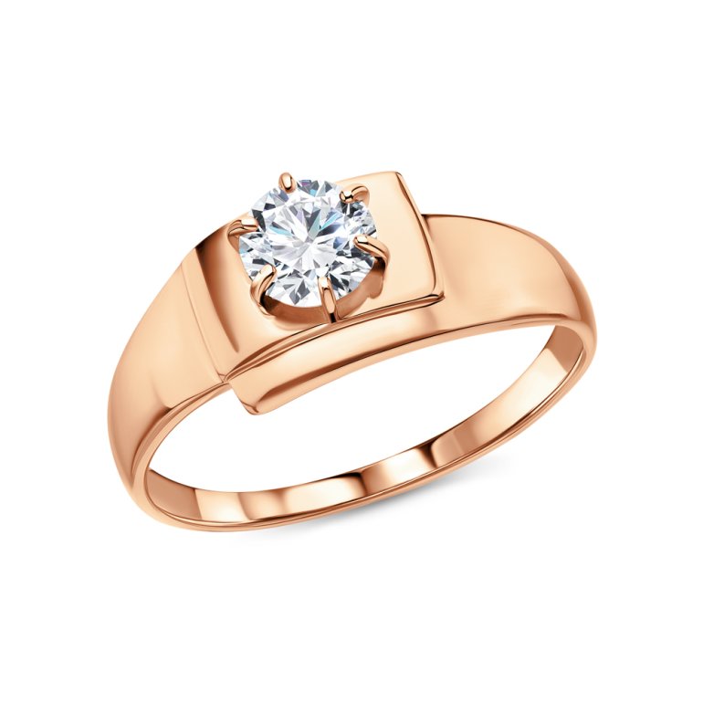 Кольцо, вставка: фианитом бесцветным; Розовое золото 585 пробы.