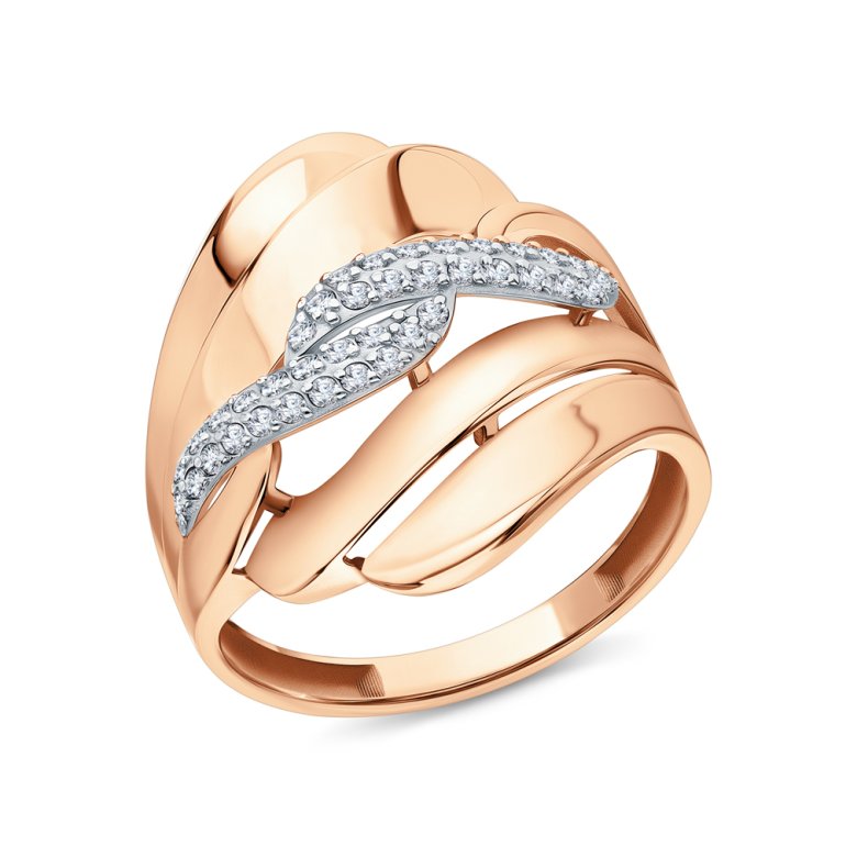 Кольцо, вставка: фианитом бесцветным; Розовое золото 585 пробы.