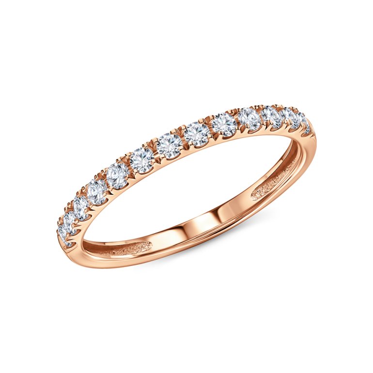 Кольцо с 13 бриллиантами выращенными, 0.398 карат, огранка круг 57 граней, цвет 3, чистота 5, тип огранки В; Розовое золото 585 пробы.