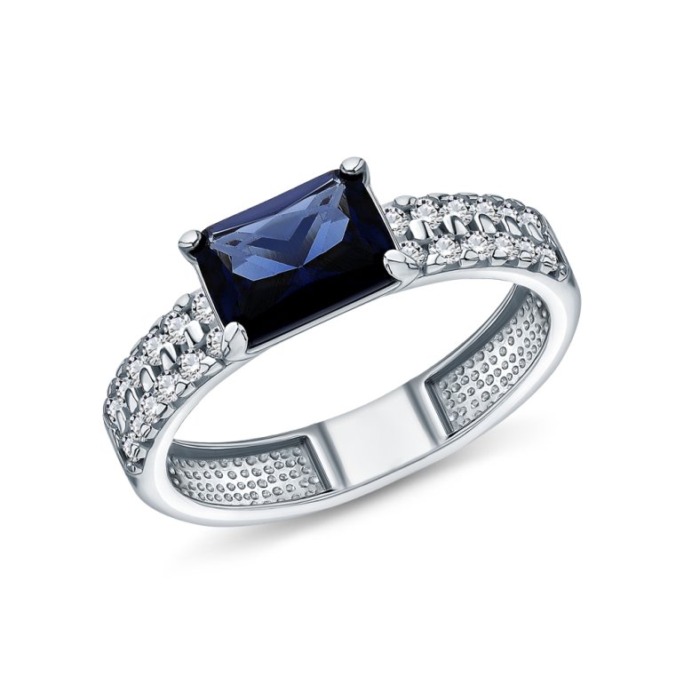 Кольцо, вставка: фианитом бесцветным;  ситалл синий; Серебро 925 пробы.