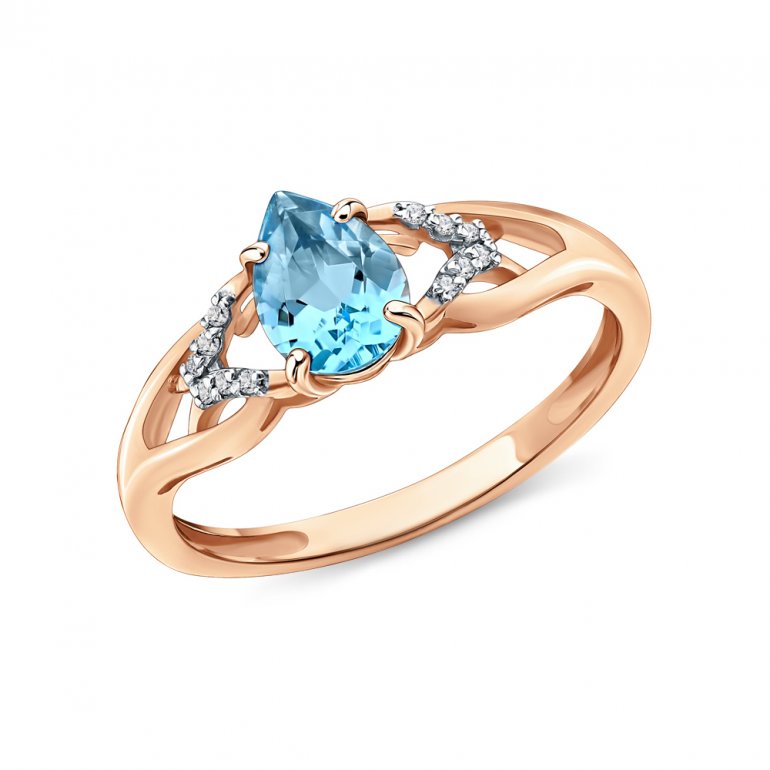 Кольцо с 1 топазом свисс природным, 0.79 карат, тип огранки Б; фианит; Розовое золото 585 пробы.