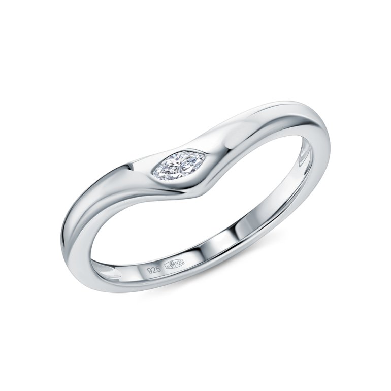 Кольцо с 1 бриллиантом выращенным, 0.06 карат, огранка маркиз 55 граней, цвет 3, чистота 5; Серебро 925 пробы.