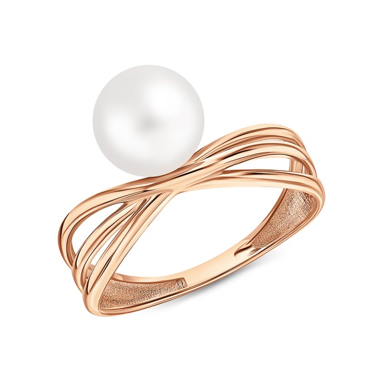 Кольцо с 1 жемчугом пресноводным культивированным белым; Розовое золото 585 пробы.