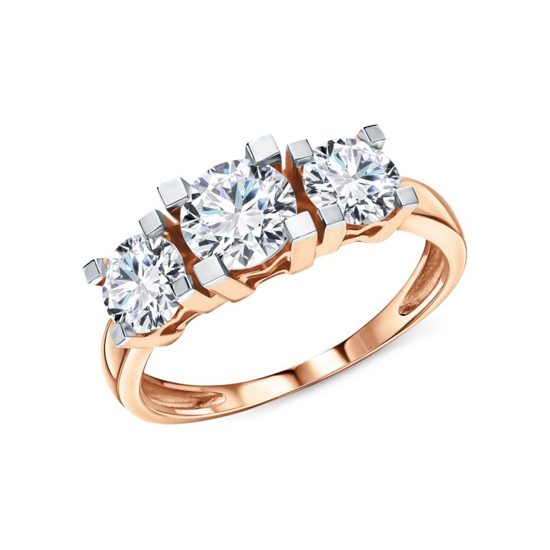 Кольцо с 1 бриллиантом выращенным, 0.844 карат, огранка круг 57 граней, цвет 3, чистота 6, тип огранки А; 2 бриллиантами выращенными, 1.026 карат, огранка круг 57 граней, цвет 3, чистота 6, тип огранки А; Розовое золото 585 пробы.