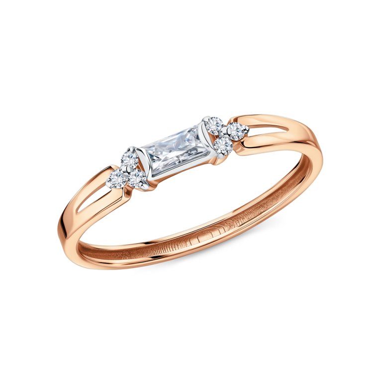 Кольцо, вставка: фианитом бесцветным;  фианитом бесцветным; Розовое золото 585 пробы.