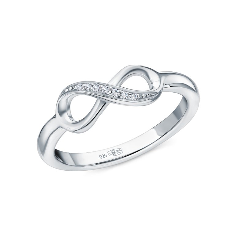 Кольцо с 3 бриллиантами выращенными, 0.015 карат, огранка круг 57 граней, цвет 3, чистота 5; 4 бриллиантами выращенными, 0.016 карат, огранка круг 57 граней, цвет 3, чистота 5; Серебро 925 пробы.
