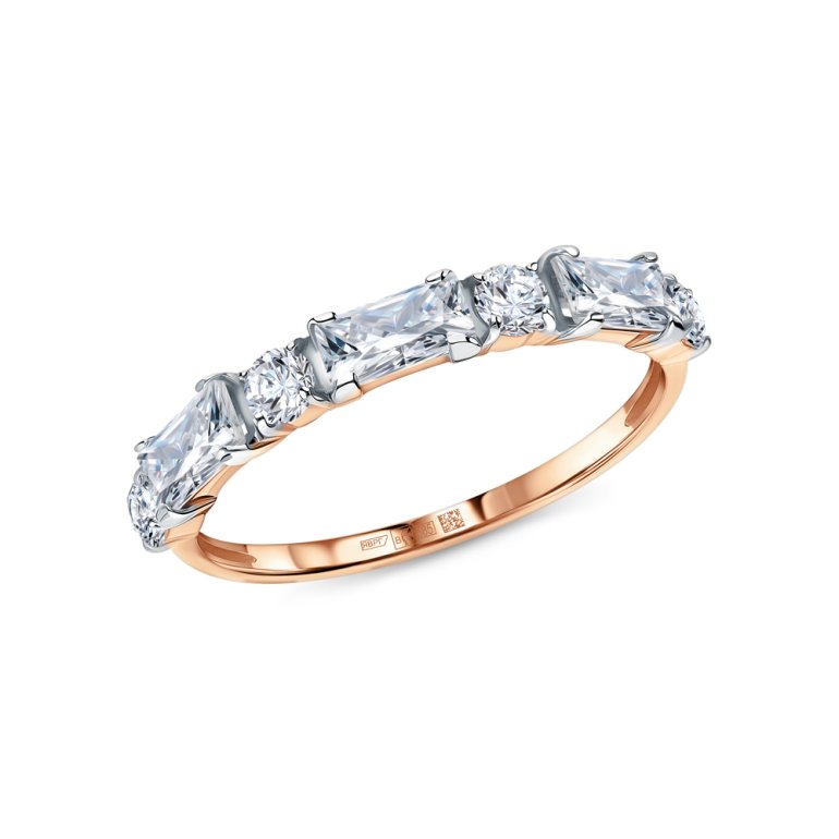 Кольцо, вставка: фианитом бесцветным;  фианитом бесцветным; Розовое золото 585 пробы.